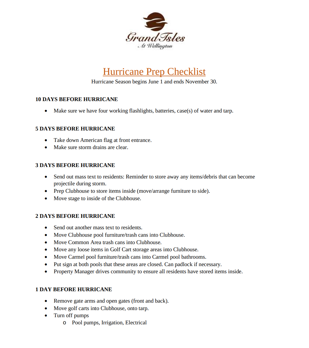 Hurricane Prep Checklist